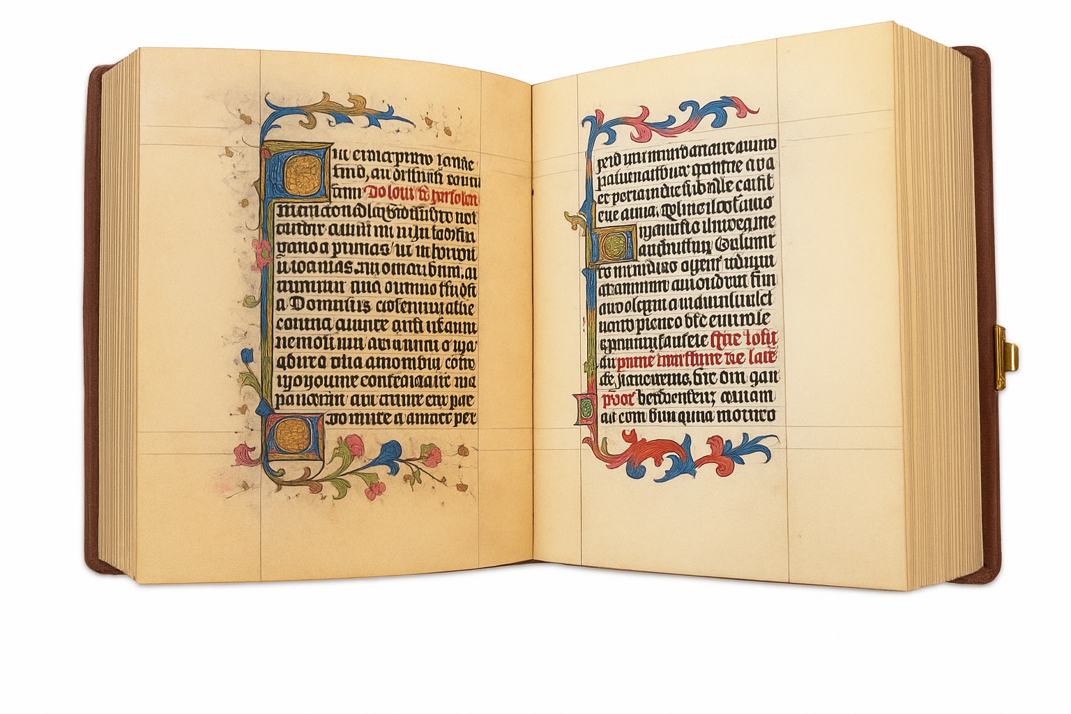 Das Buch selbst hat eine bewegte Geschichte: Im 19. Jahrhundert wurde es in zwei Teile getrennt und über verschiedene Sammlungen weitergegeben. Erst in den 1960er- und 1970er-Jahren konnte es durch die Pierpont Morgan Library in New York wieder vollständig zusammengeführt werden – wo es heute als eines der bedeutendsten Zeugnisse spätmittelalterlicher Frömmigkeit und Kunst bewahrt wird.